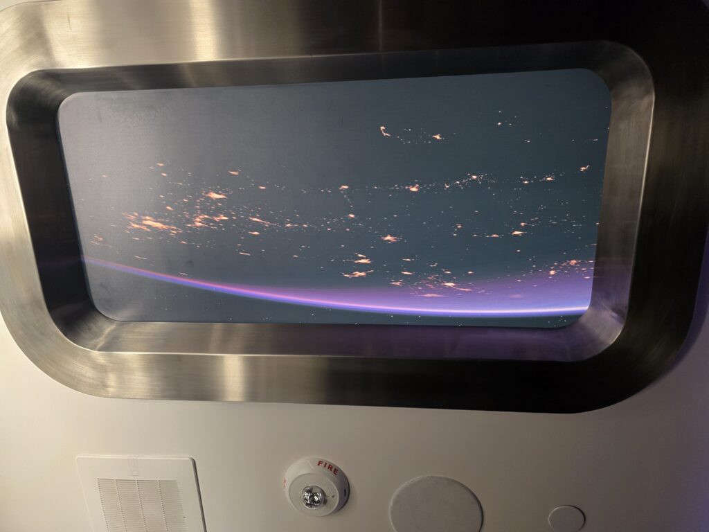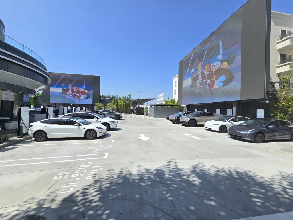 Desde que nos estacionamos, supimos que estábamos en un lugar único. El diseño, una mezcla perfecta de lo futurista con lo retro, nos dio la bienvenida con la película de “Los Supersónicos” en el autocinema, un viaje directo a la niñez.